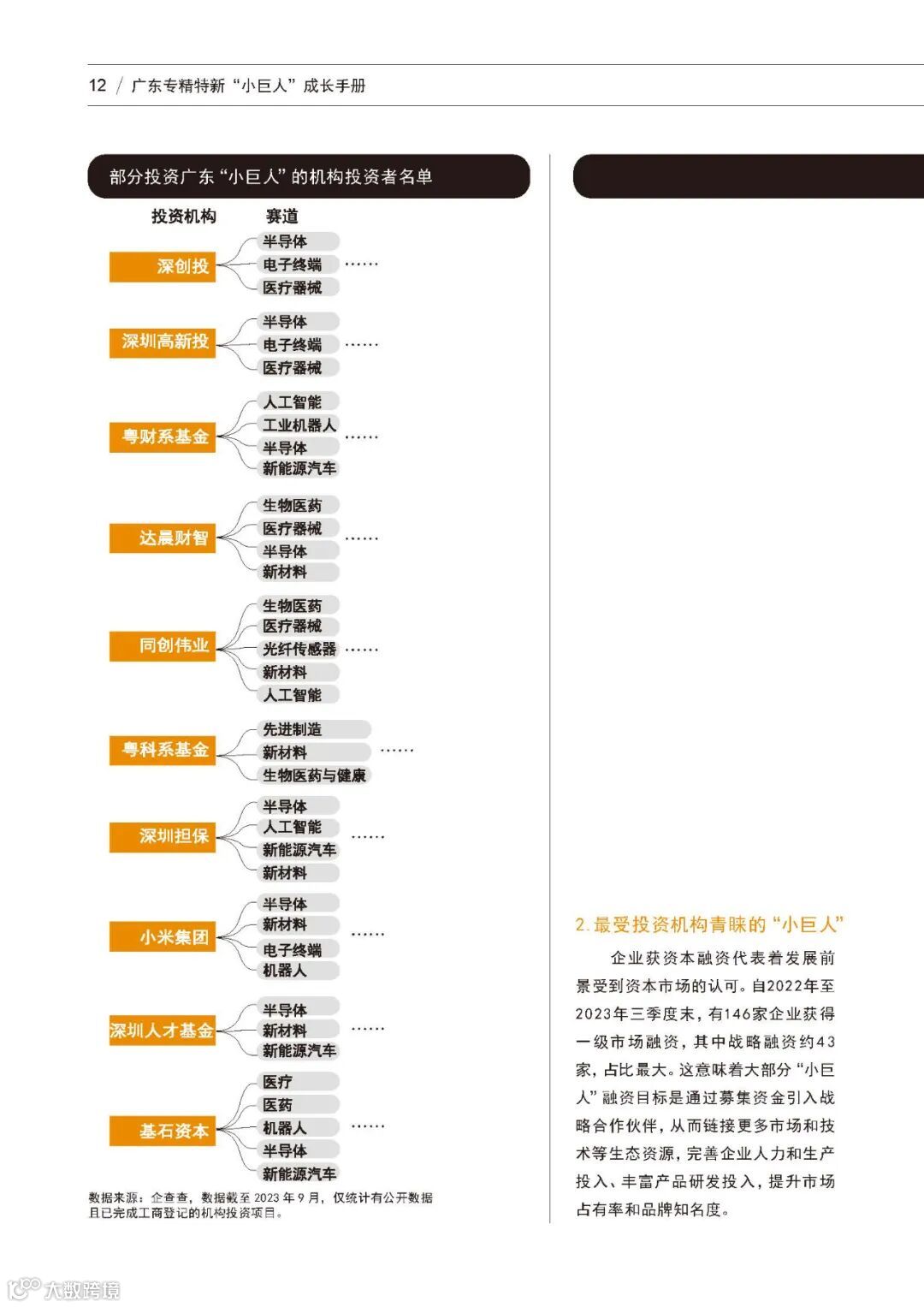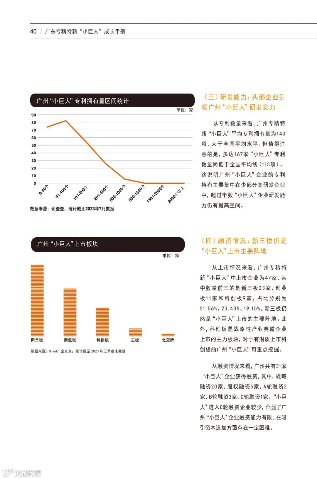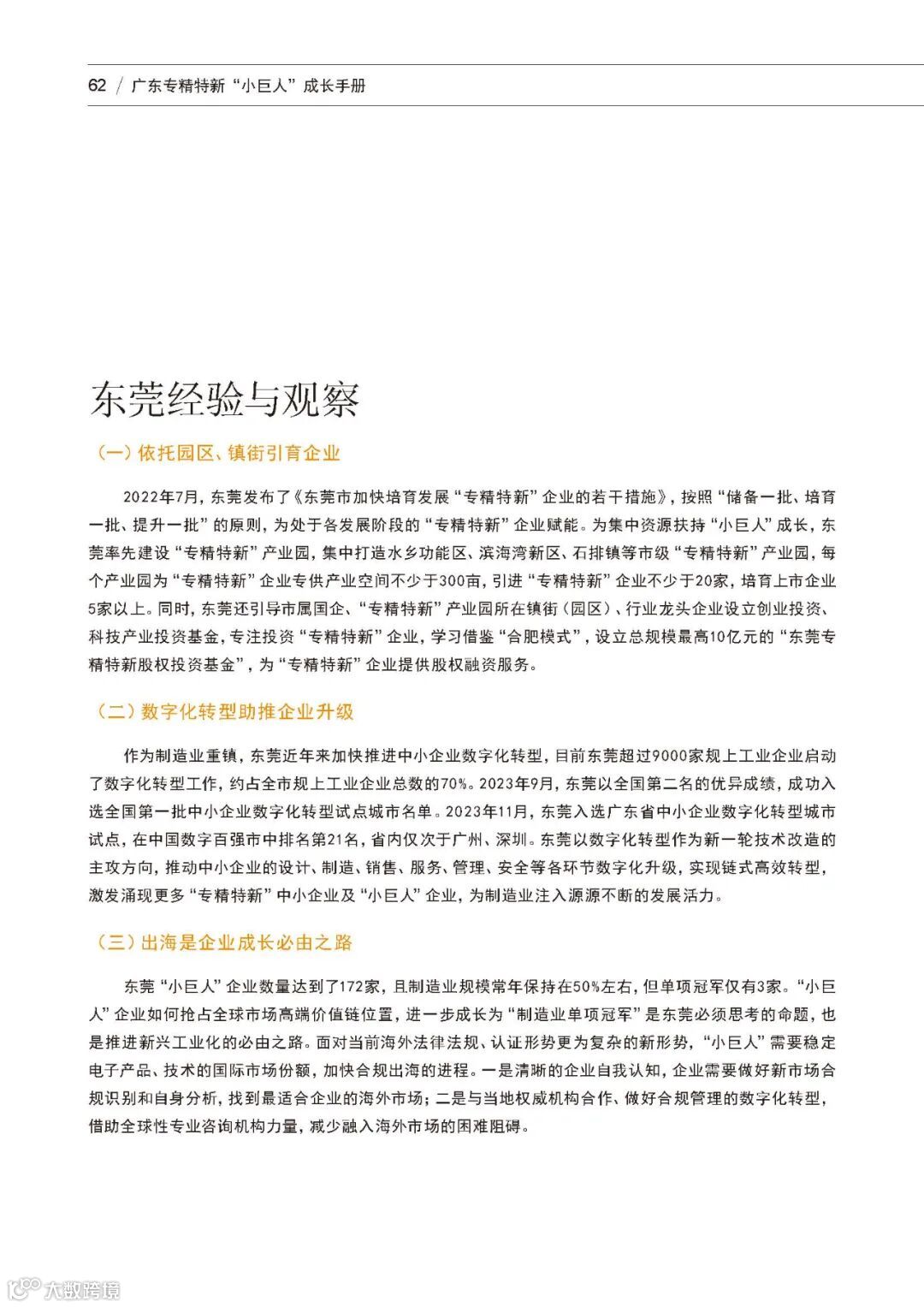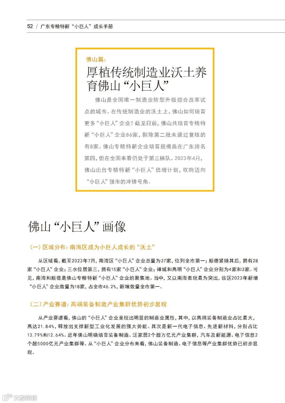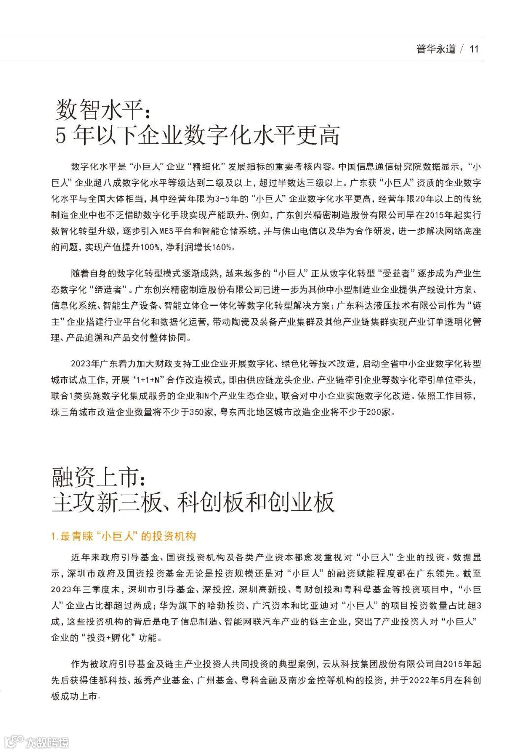 《广东专精特新“小巨人”成长手册》显示,广东 “小巨人” 企业共 1525家,深广莞佛四城占比超八成,深圳以 752 家领先。这些企业多为中等规模,成立11-20年,聚焦新一代信息技术、高端装备制造等战略新兴产业,平均专利 139 项超全国水平,但企业技术中心数量不及江浙。融资上,新三板是主要上市板块,深创投、粤科金融等为重要投资方,半导体、新能源汽车赛道最受青睐。企业需政府配置产业基金、开放数据场景,自身加速数字化转型与合规治理,盼被更多 “看见”。