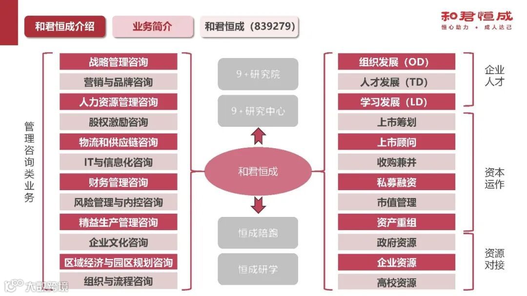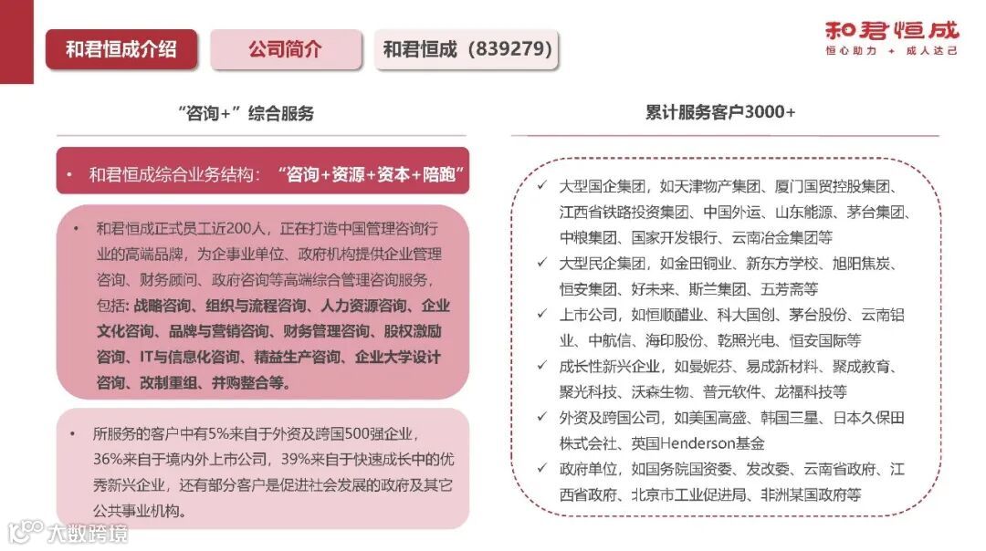 和君恒成作为一家提供高端综合管理咨询服务的企业,其业务围绕 “咨询 + 资源 + 资本 + 陪跑” 展开,尤其在绩效薪酬板块,通过专业方法和丰富案例积累了深厚经验。