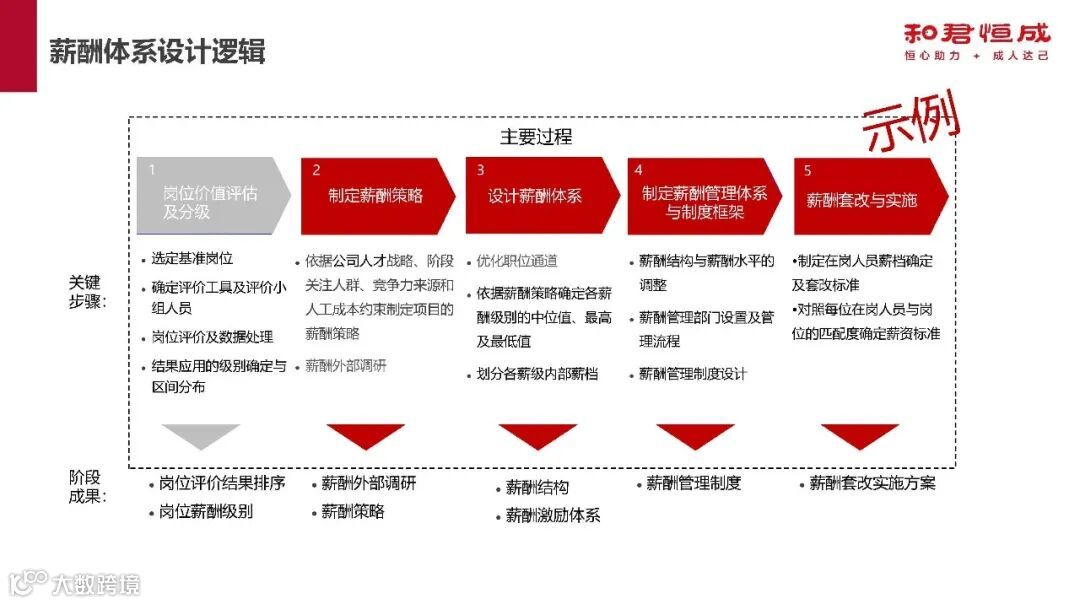 设计原则与逻辑:薪酬管理体系搭建遵循以职位定工资、以任职资格定晋升、以工作绩效定奖金等原则,确保关键绩效考核指标与战略一致,劳动态度评估符合企业文化价值观。设计逻辑包含薪酬外部调研、岗位价值评估、制定薪酬策略、设计薪酬体系并实施套改等多个步骤。