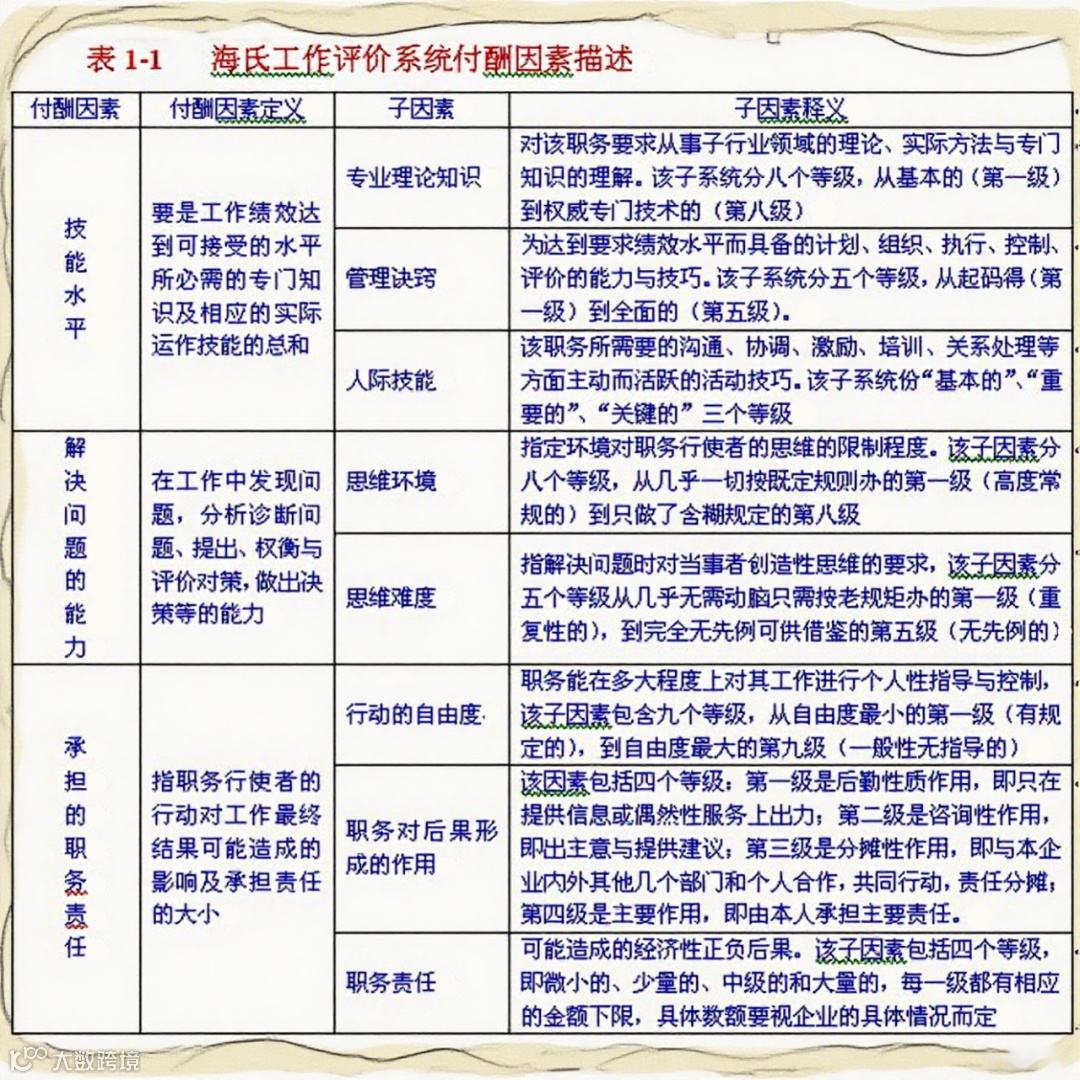 (一)三大付酬因素及评价标准