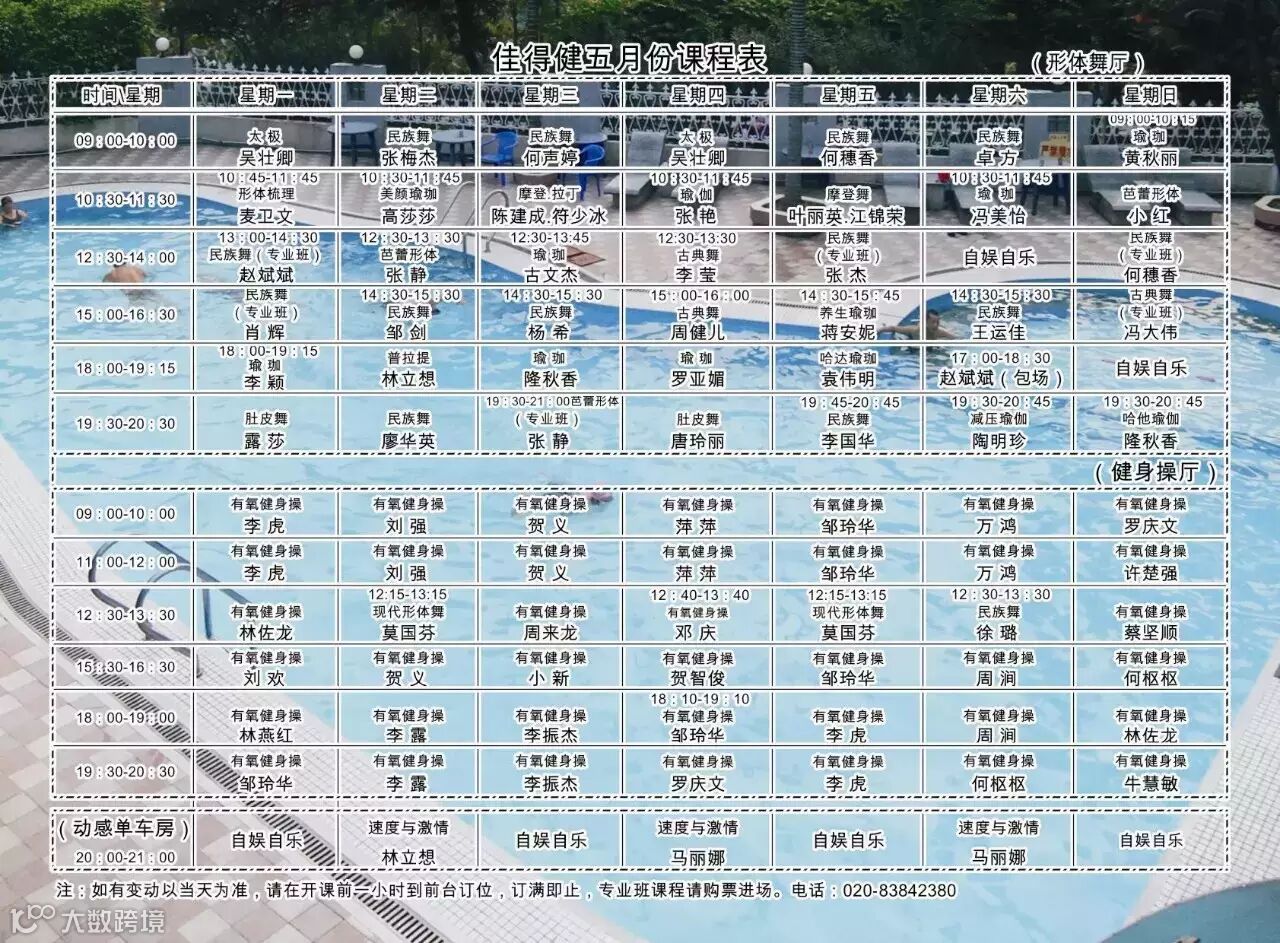 佳得健五月份课程表