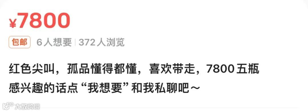 最近的二手平台上,多个卖家挂出了红色“尖叫”的链接,打上绝版、限量等标签,标甚至还有卖家挂出了8888.88万元一箱(15瓶),更有甚者价格更离谱,还表示:“升值的想象空间很大。”