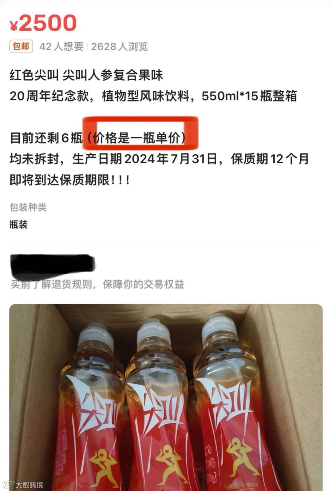 当时饮品市场以甜味为主,红色尖叫独特口味不被广泛接受,被形容为 “酸烟灰水”“腐烂草根味”,但 “养生” 标签引发好奇。该产品已停产,去年 8 月限时返场的 1 万箱遭抢购,二手平台货源多为此批,且本月底7月31日到期。