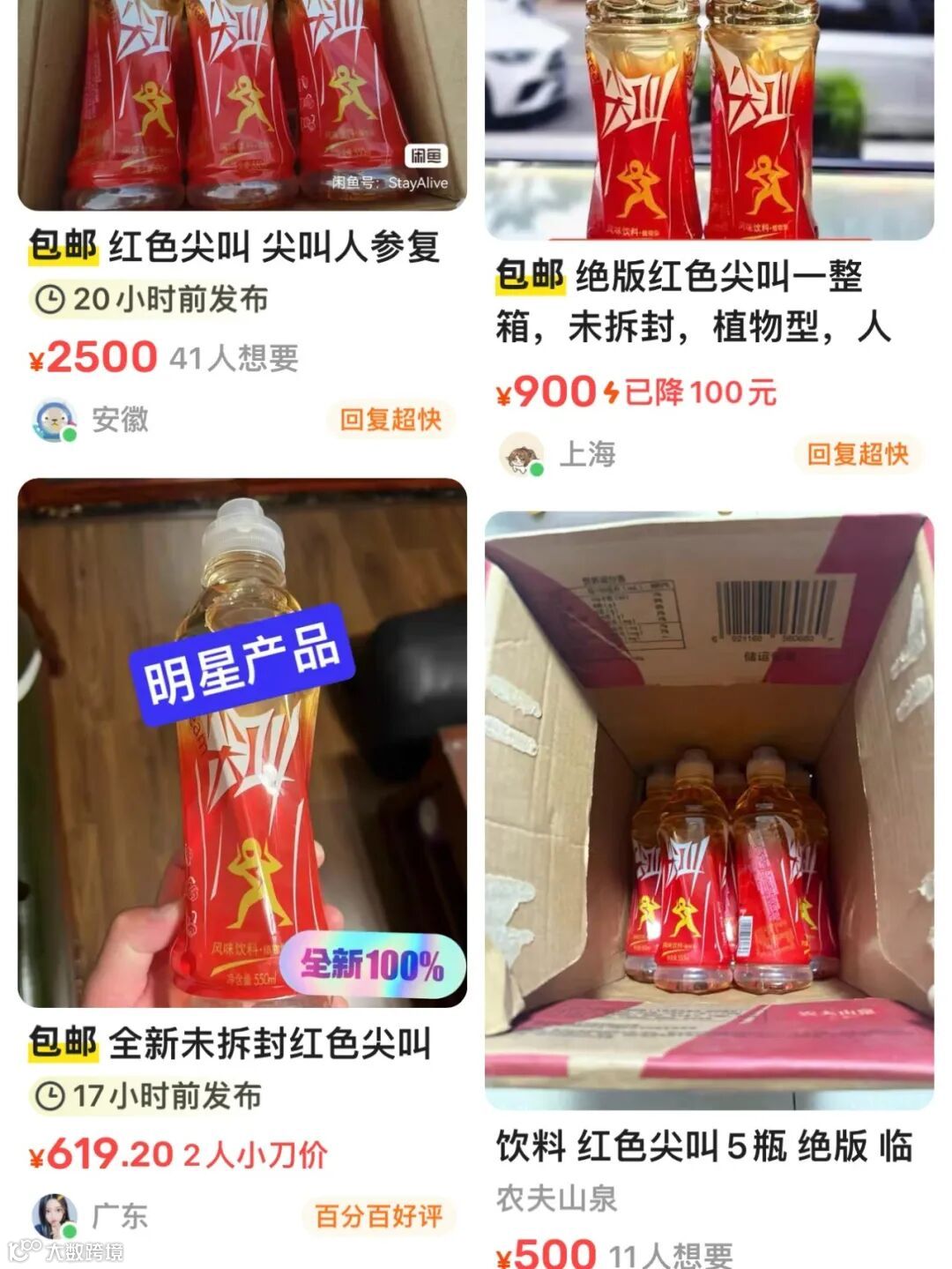 第二步,借 “绝版” 造稀缺。2024 年尖叫 20 周年,农夫山泉限时复刻红瓶,仅 1 万箱,3 天抢空。精准踩中怀旧经济,故意留缺口,对二手平台 8900 元天价,官方回应平淡,让炒作升温,免费上热搜,是高明的 “慢营销”。