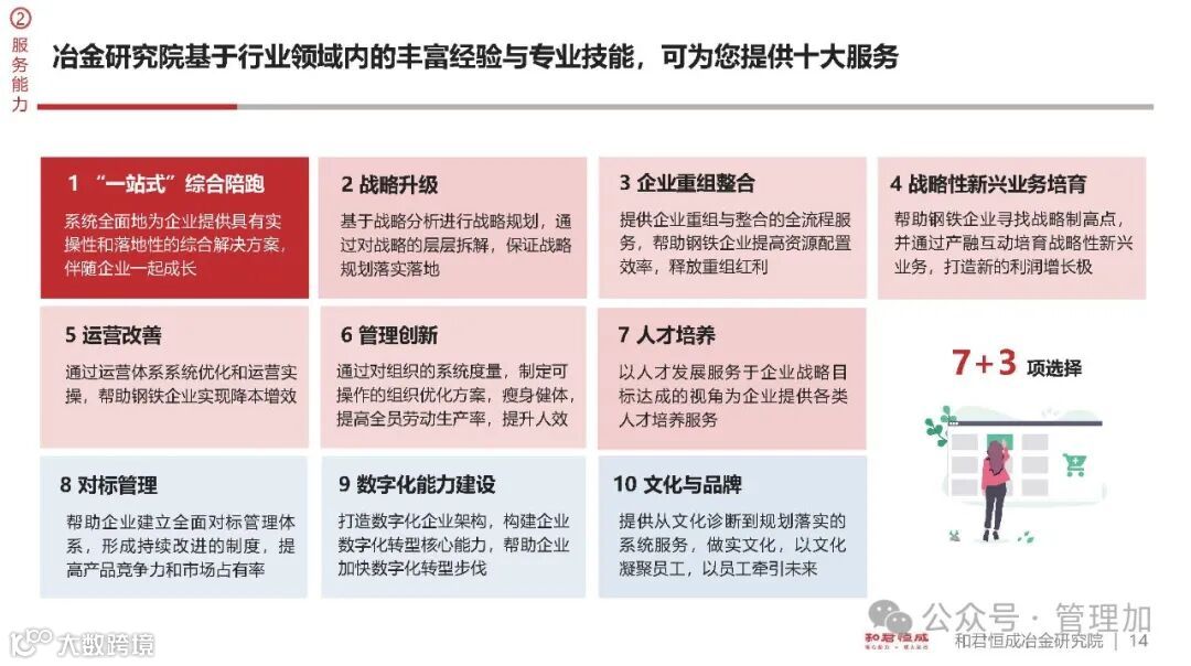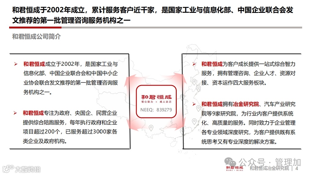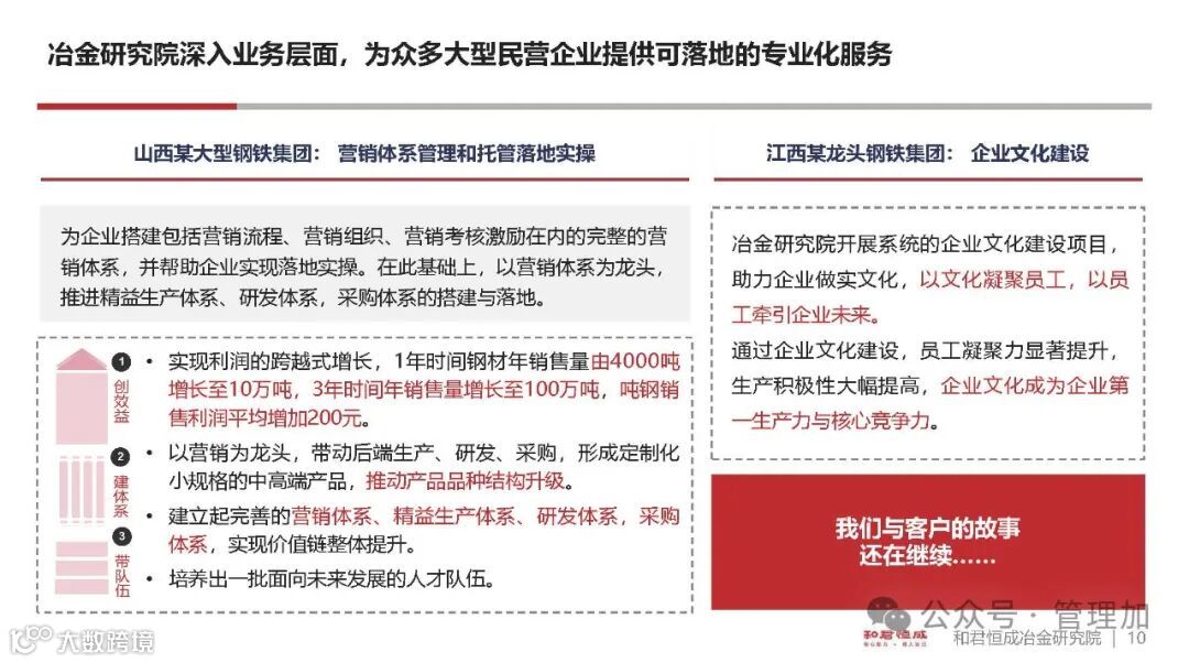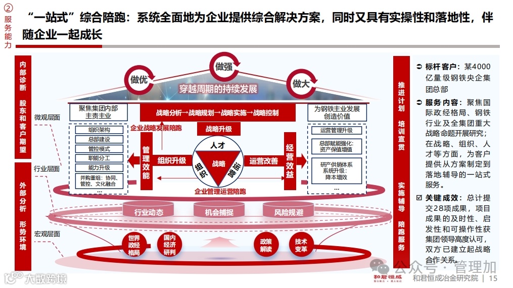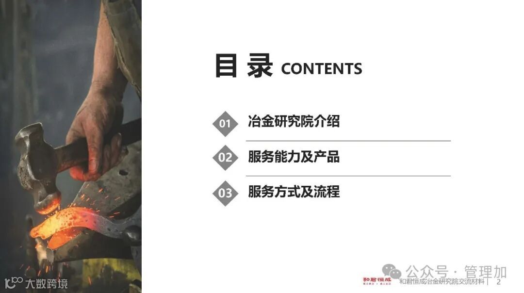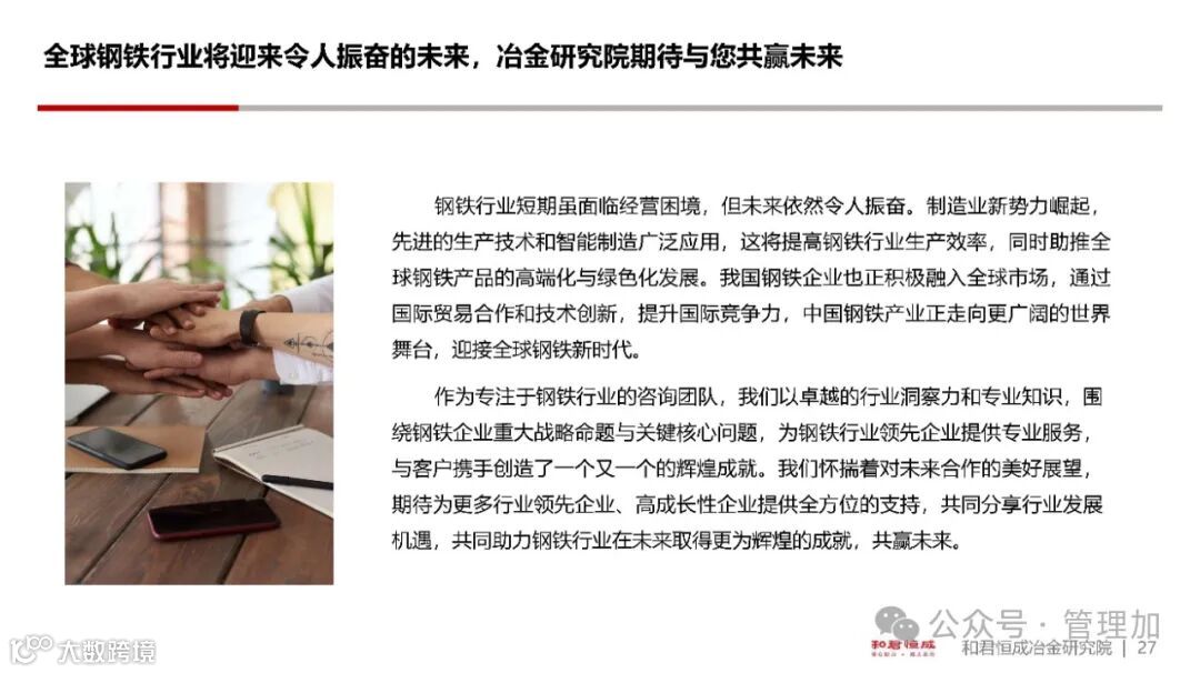 管理加如何让您的冶金企业在行业波动中稳健前行,实现突破性增长?和君恒成冶金研究院凭借深厚的行业知识和实战经验,为你开启变革的步伐。解决钢铁企业面临的行业周期和升级问题,助力企业穿越周期、降本增效。