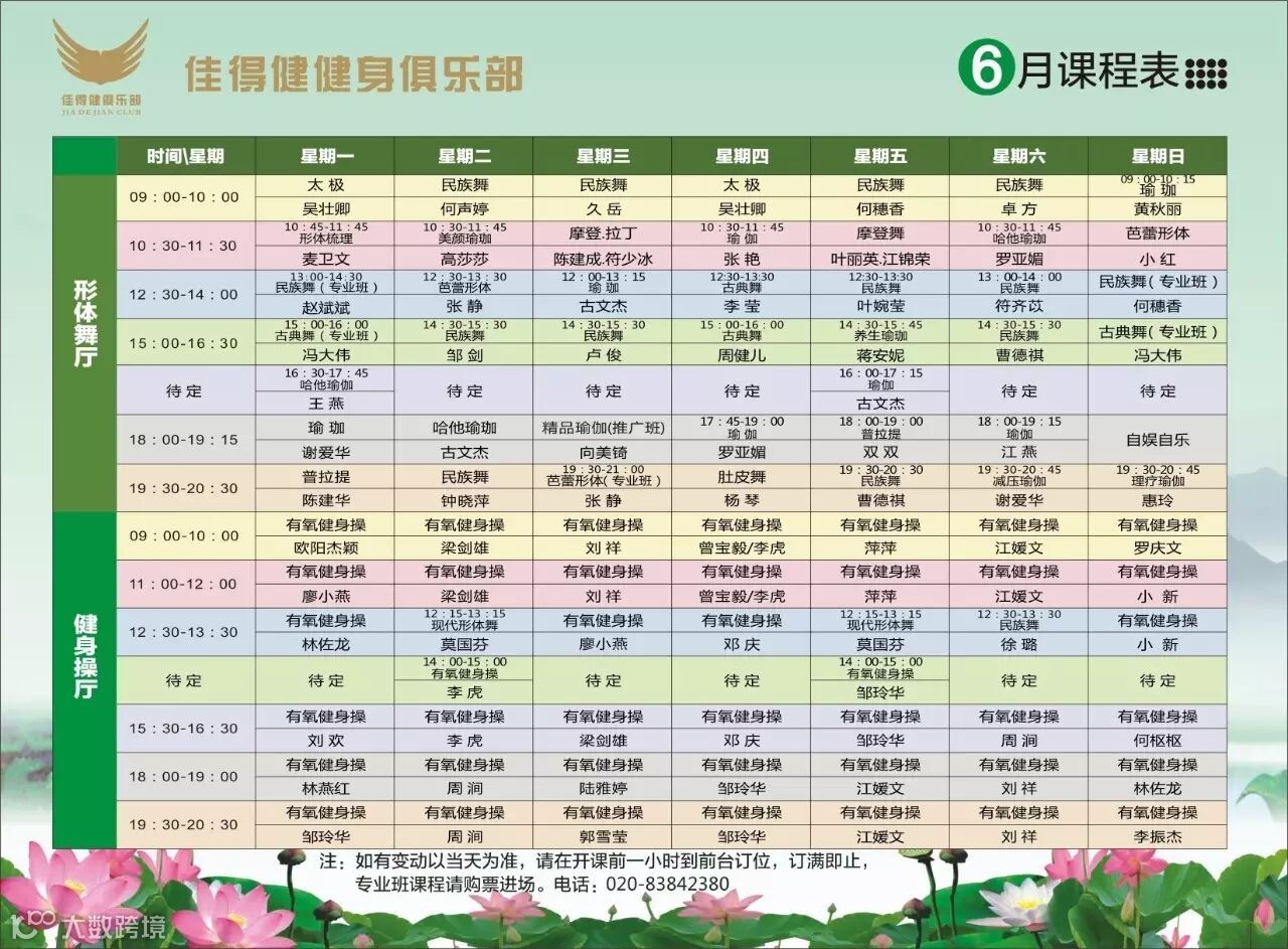6月份课程表