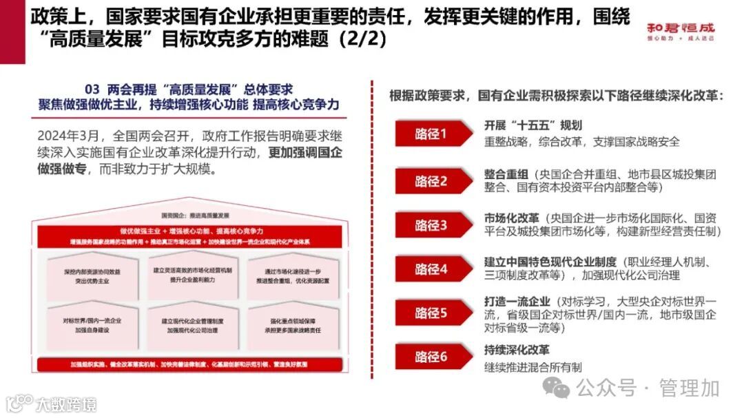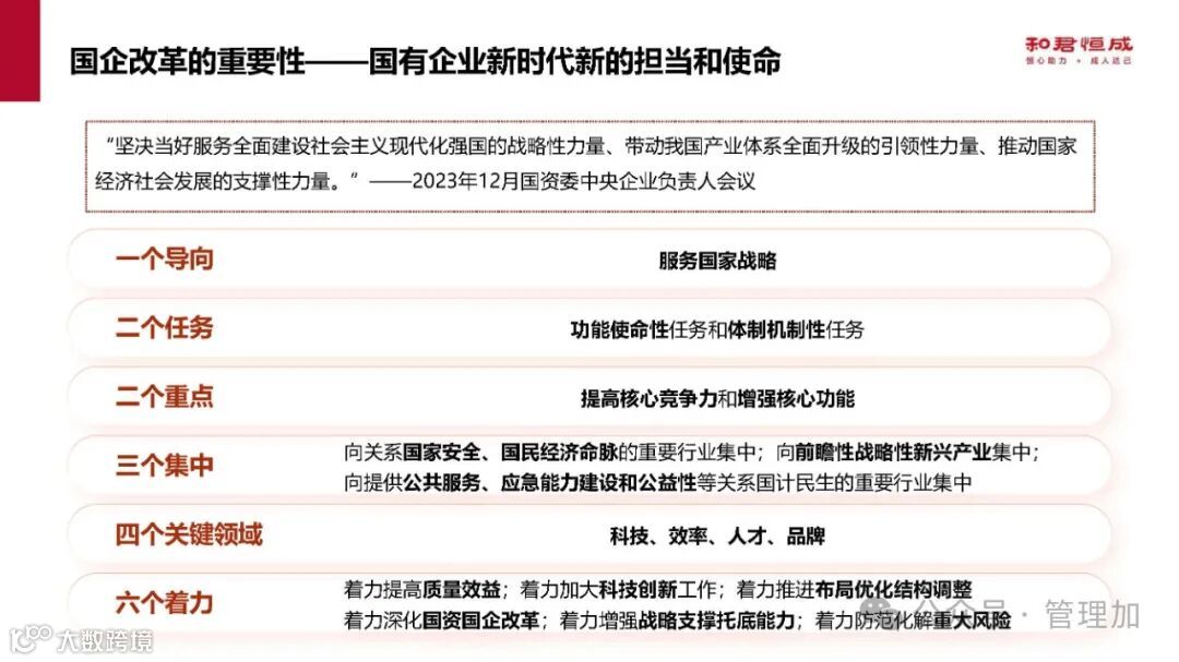 新形势下,国资国企改革进入新阶段,肩负重要使命。和君恒成致力于提供专业支持,促进国资央企建设世界级企业,提升价值创造能力,实现高质量发展。