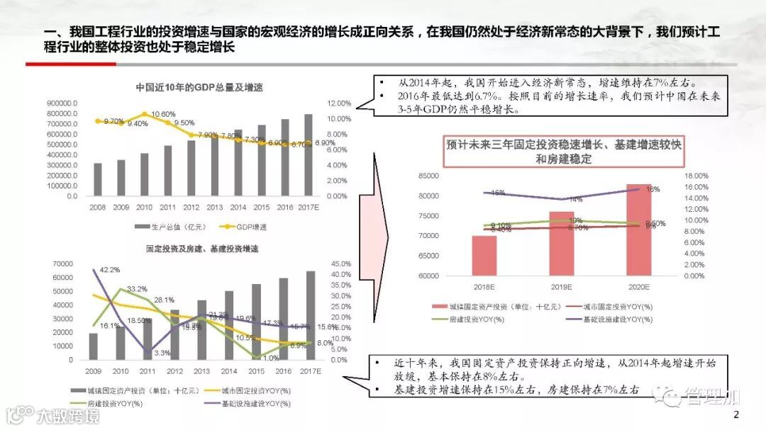 工程行业是拉动我国经济增长的一个主要行业,行业企业众多,明确行业发展方向对企业非常重要,本文主要从工程行业总体发展趋势和各子行业总体发展趋势和各自行业的发展,表明了工程未来3-5年子行业的发展方向。