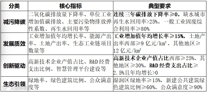 • 突出创新驱动与数字化:新增R&D投入、智慧管理平台等指标,将科技创新和数字化转型作为生态工业发展的核心动力。