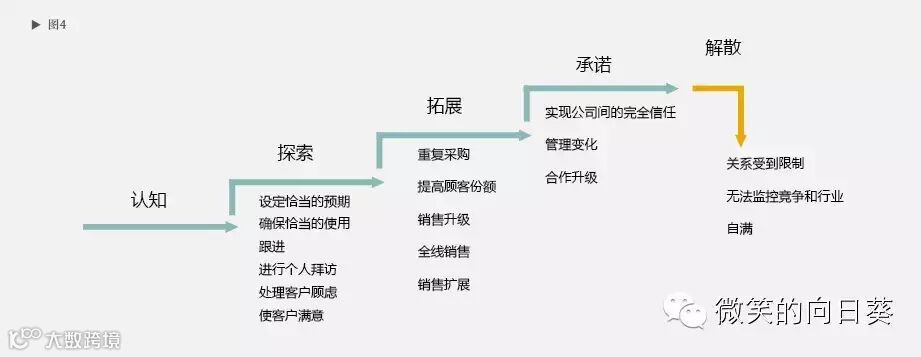 大客户管理的重心是随着和客户所处的不同关系阶段而采取相应的策略和行动, 以强化和客户的联系,提高客户满意度和粘性(见图4)。