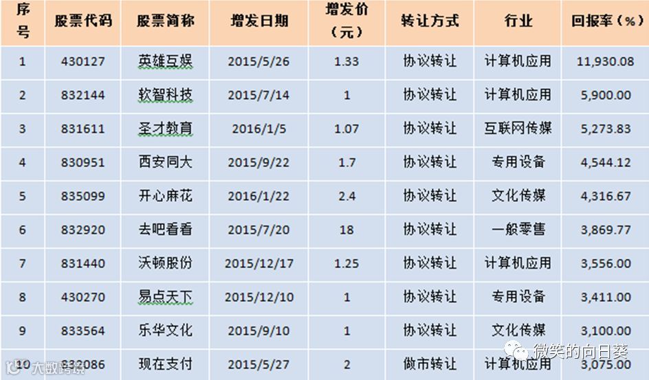 比如英雄互娱,移动电竞界的“腾讯”,它把端游市场培育好的用户抢到自己的移动平台上,实际控制人是前中国手游领域排名第一的中手游总裁应书岭。2015年英雄互娱共发布6次定增计划,募集资金22亿元多,沈南鹏、包凡、徐小平、王思聪、王中军大佬成为公司股东。5 月26 日,定价1.33 元/股;6 月 30 日,定价10.99 元/股;7 月 10 日,定价120 元/股。经过 50 天的定增,英雄互娱控股了塞尔瑟斯(430127),投后估值超过100 亿。