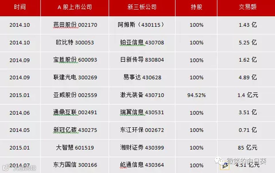 和君商学斥资14亿收购了汇冠股份23.08%的股份,成为大股东。体育之窗耗资13.8港币,收购港股联众国际28.76%的股权。钢钢网(股票代码:831277)融资20亿参与首钢股份的定增。新三板转板的政策暂不明朗,IPO排队公司数量近千家,按照每周IPO2-3家的速度,要耗时数年,新三板公司收购、参股A股上市公司、新三板公司、未上市公司的趋势也在加剧。