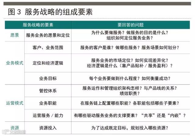 第一步,明确服务战略。这是最重要的一步。服务战略是整个服务业务蓝图框架应用于一个特定组织的高阶定制化输出,服务战略确保组织已经形成了对发展服务业务的基本共识(见图3)。