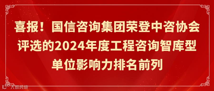 近日,中国工程咨询协会(以下简称“中咨协会”)发布了2024年度工程咨询智库型单位影响力行业排名。国信国际工程咨询集团股份有限公司(以下简称“国信咨询集团”)凭借卓越的服务能力、专业实力和行业影响力,从全国众多参评单位中脱颖而出,位列榜单第18名。