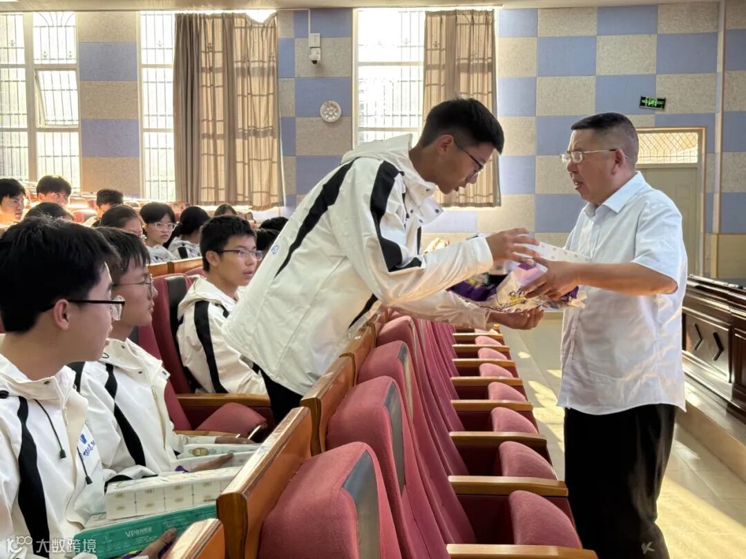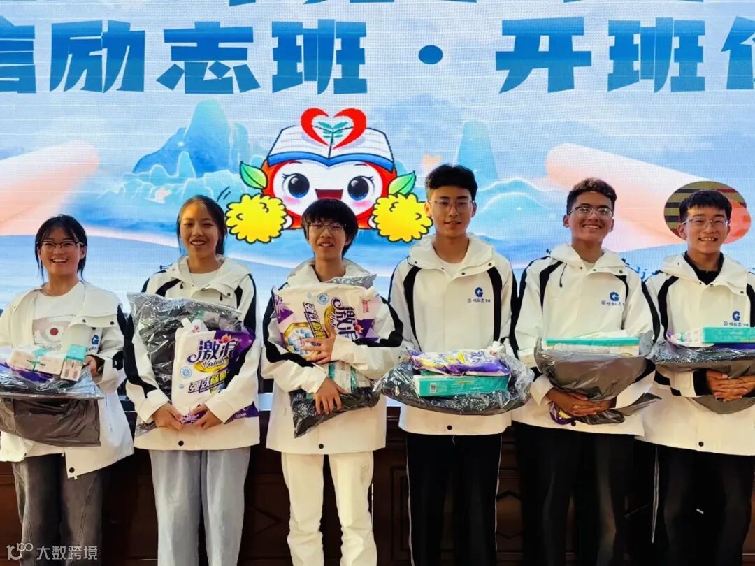 同时,给同学们发放了生活卫生用品和班服,共同为励志班揭牌。