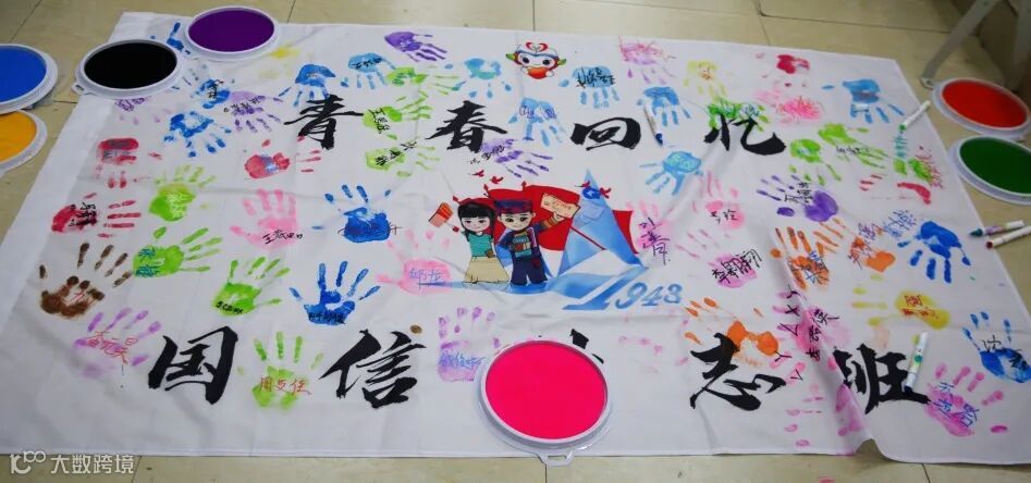 活动伊始,同学们以小组为单位,共同构思、绘制各小组独特的创意毕业画。随后,每人郑重地在班级毕业旗上按下彩色手印并签名。这面汇聚了集体智慧与个人印记的班旗,不仅是一件毕业纪念品,更是属于第一届国信励志班全体同学深厚情谊的青春见证。