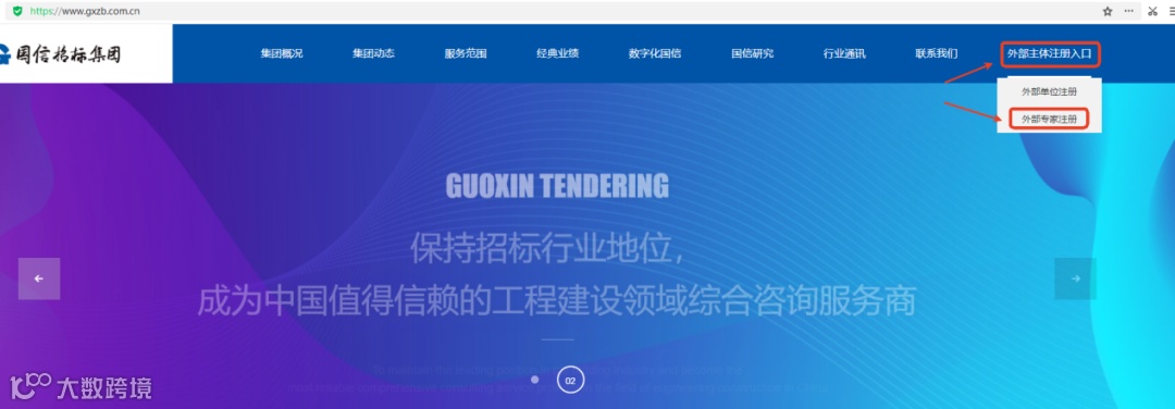 国信招标集团股份有限公司官网(https://www.gxzb.com.cn),在首页找到“外部主体注册入口-外部专家注册”,点击后即可进入“国信招标集团专家入库在线申请”进行注册。