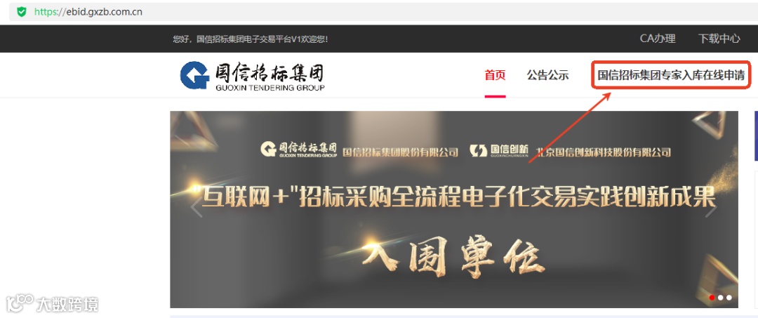 国信招标集团电子交易平台。申请人进入国信招标集团电子交易平台 (https://ebid.gxzb.com.cn,见附图1) 首页点击“国信招标集团专家入库在线申请”注册。