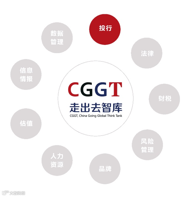 走出去智库(CGGT)定位于中国企业境外投资并购实务,由国内和国际一流专业机构——投行、法律、会计、风险管理、银行、品牌、人力资源、估值、数据信息9个领域的专家团队共同发起或合作,在全球范围内约200个国家/地区拥有专业资源。