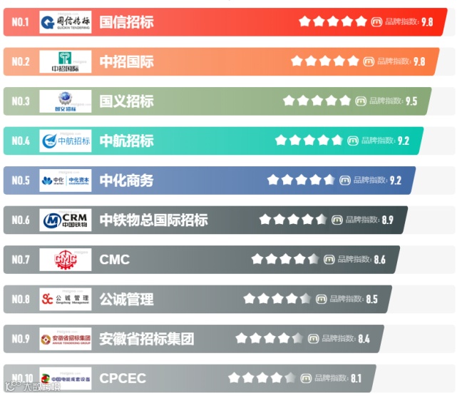 国信招标集团荣登榜首。十大招标代理公司数据由