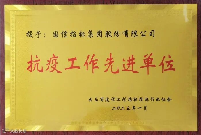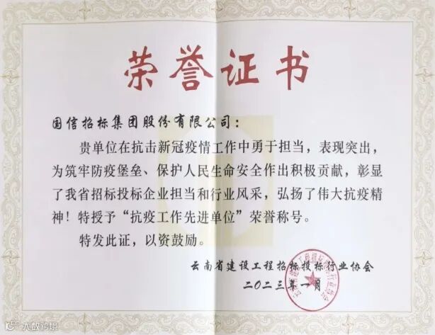 国信招标集团荣获云南省建设工程招标投标行业协会抗疫工作先进单位