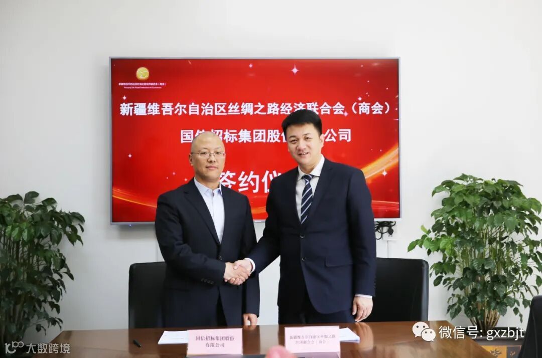 春风四月,喜报传来。4月16日,国信招标集团股份有限公司(以下简称“国信招标集团”)与新疆维吾尔自治区丝绸之路经济联合会(商会)签署战略合作协议。国信招标集团新疆分公司总经理李群堂、丝绸之路经济联合会(商会)会长王锐霖、秘书长魏建华出席签约仪式。