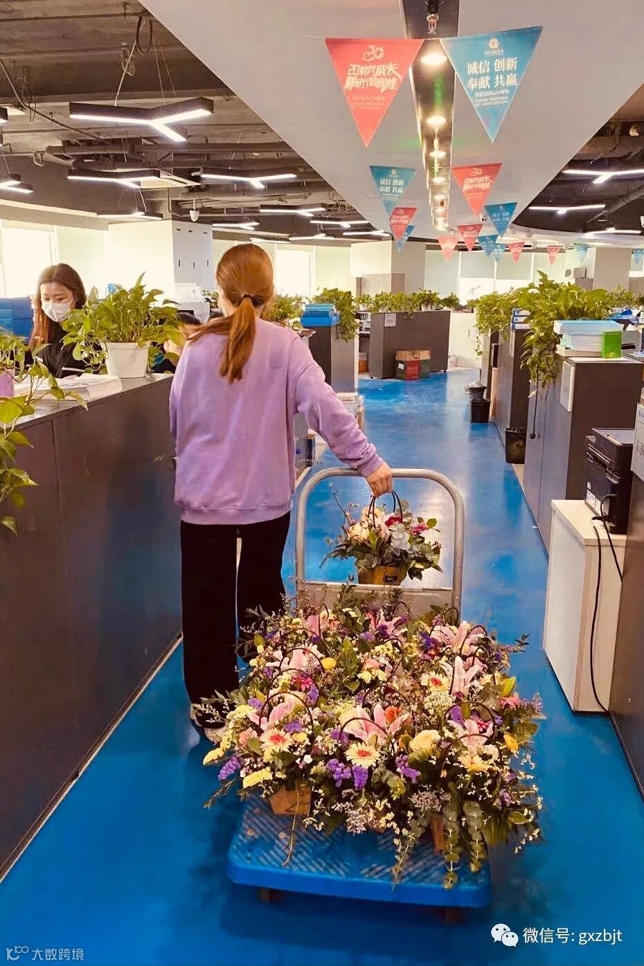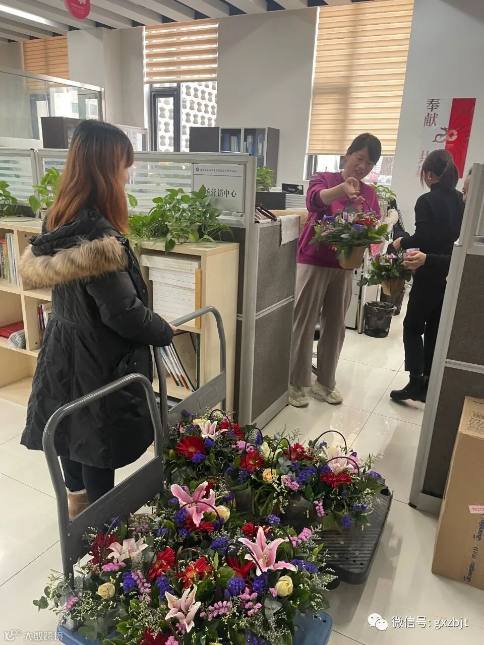 一大早,总裁办公室的同事们就开始忙碌,在国兴大厦和外文创意园办公区向女同事们发放美丽的花篮。娇艳芬芳的鲜花令女同事们惊喜交集,大家精心挑选着心仪的花篮,纷纷在花的海洋中拍照并发朋友圈留念。