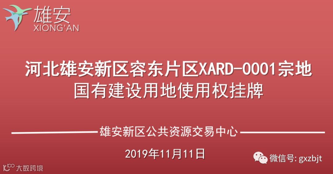 2019年10月10日,雄安新区容城县自然资源局发布了《雄安商务服务中心项目国有建设用地使用权出让公告》,以公开出让方式供应项目用地。2019年11月11日,雄安新区容东片区XARD-0001宗地国有建设用地使用权公开出让成功,意义重大。