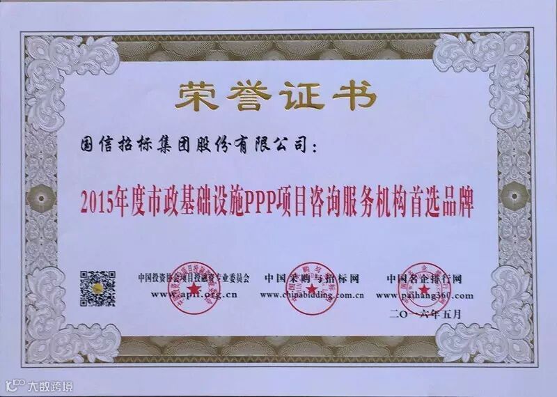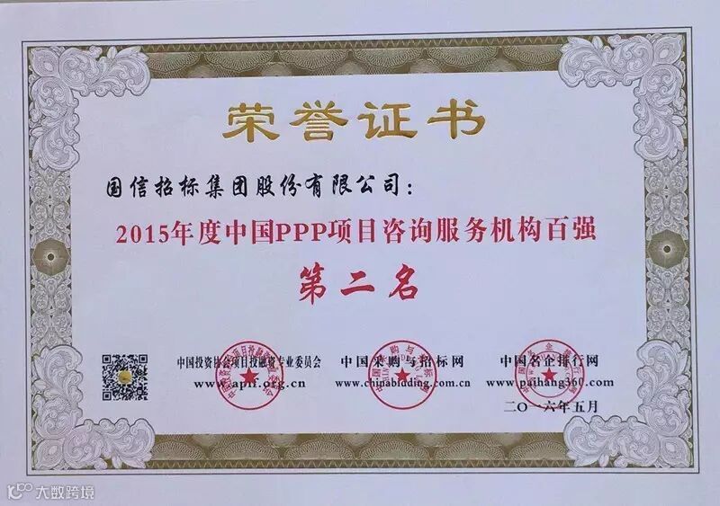 国信招标集团是PPP业务最具成功经验的咨询机构之一,属于国内PPP理念最早传播者和咨询业务最先开拓者之一。早在2003年就主导完成了“国家体育场(鸟巢)PPP项目”,树立了超大型公用文化体育设施项目PPP操作的经典标杆,“天津市北水业公司部分股权转让咨询项目(TOT)”成功入选国家发改委PPP示范项目,特许协议被国家住建部“关于加强市政公用事业监管的意见”列为范本。截止目前,集团已完成了500多个PPP咨询项目,仅2015年,就有150个项目立项,融资额近10000亿元。行业范围涉及环保领域的污水处理、垃圾处理,新能源领域的垃圾焚烧发电、秸秆发电,园区项目中的产业园区、旅游园区以及轨道交通、快速公交等诸多行业。目前,集团23个分支结构及部门都在开展PPP业务,已经进入全国24个省份PPP咨询机构库。