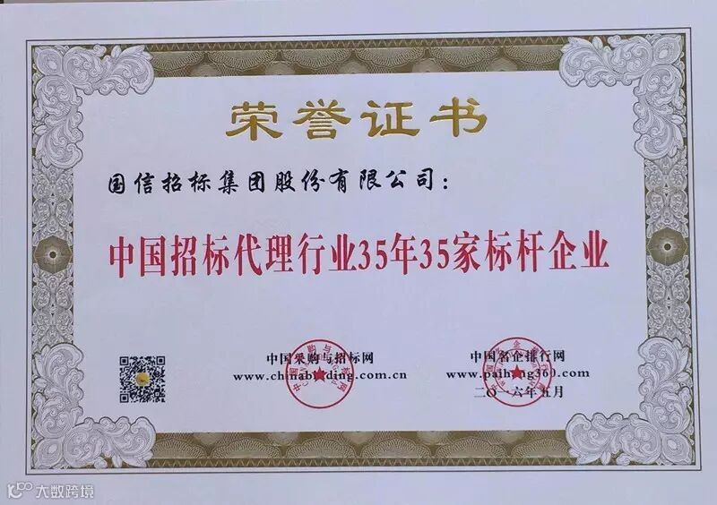 目前,国信招标集团已当选为中国招标投标协会副会长单位、中国投资协会项目开发与投融资专业委员会常务理事单位、中国招标投标协会特许经营专业委员会副主任单位等。