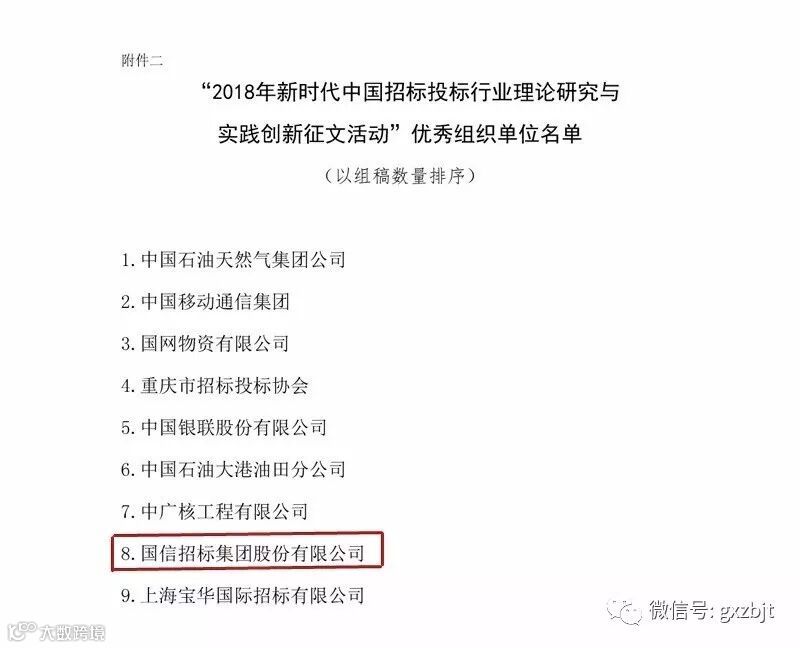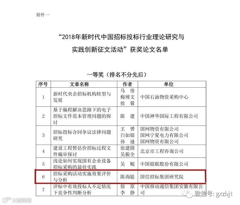 为推动招投标行业理论研究和创新实践深入发展,不断提升专业服务能力和理论研究的热情与水平,中国招标投标协会组织了“2018年新时代中国招标投标行业理论研究与实践创新征文活动”,国信招标集团研究院积极响应并参与活动。