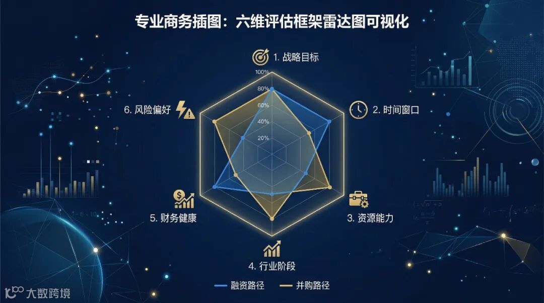 我们基于对 200+成功案例和 300+失败案例的深度研究,提炼出一套六维评估框架,帮助企业系统性评估“融资 vs 并购”的适配度。