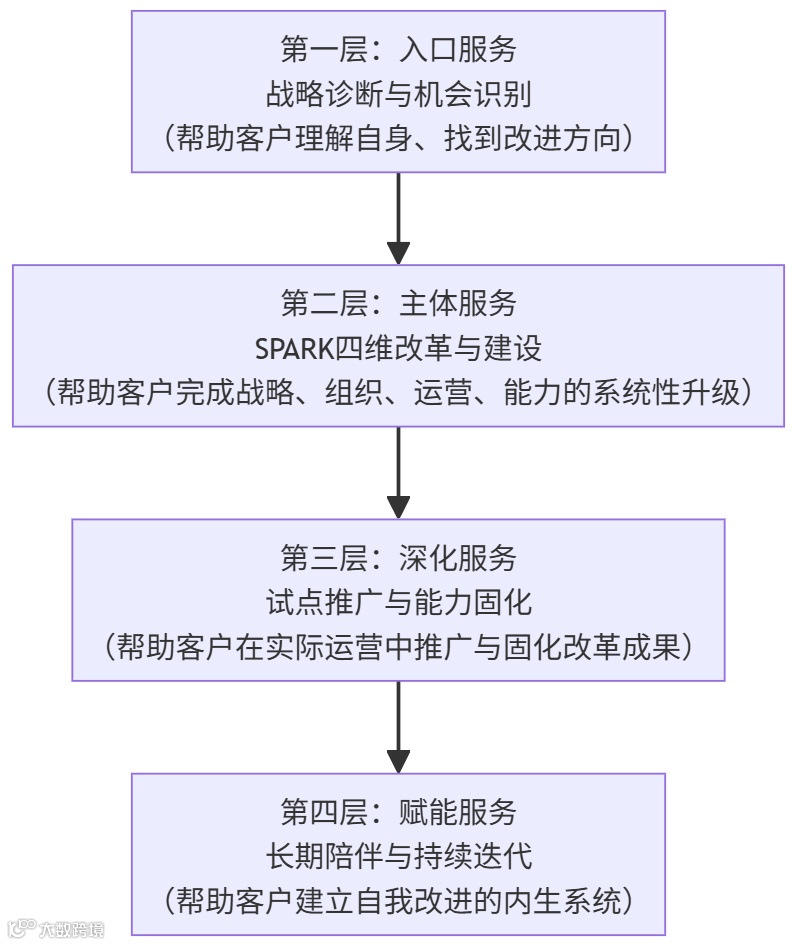 - 时间维度的完整性:从企业当前所处发展阶段出发,跨越3-5年甚至更长周期,持续提供咨询与陪伴