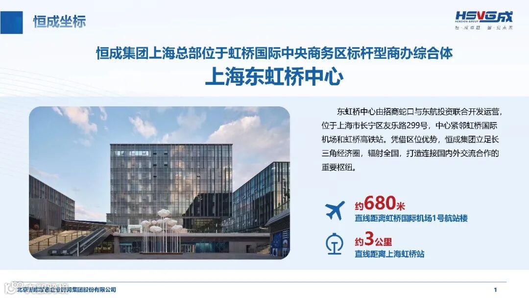 恒成集团以上海东虹桥中心为上海总部核心,立足长三角经济圈辐射全国,紧邻虹桥国际机场与虹桥高铁站的区位优势,让这里成为连接国内外交流合作的重要枢纽。
