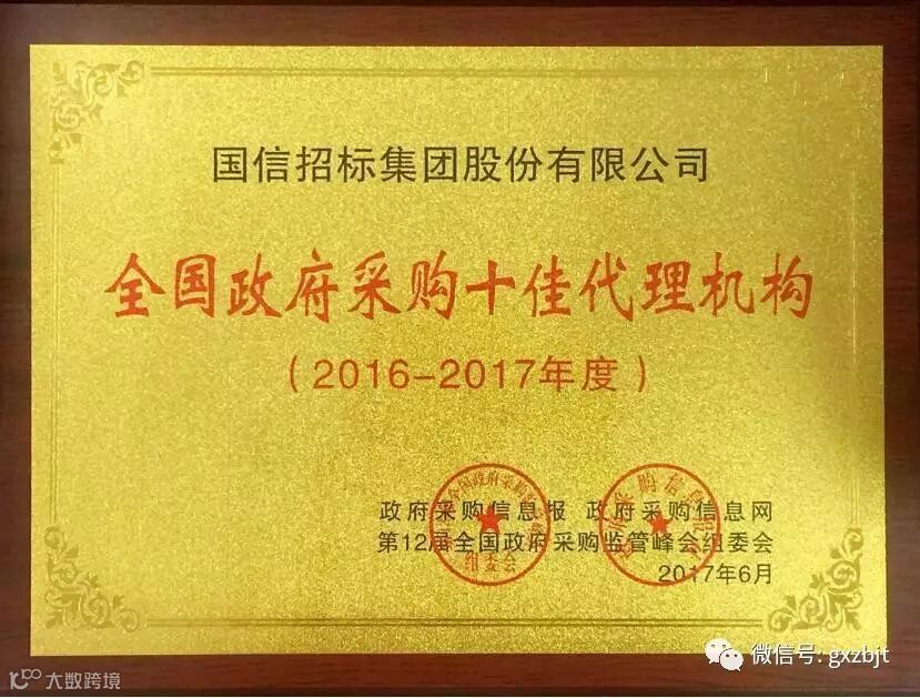 2016年11月,政府采购信息网/报组织开展了“全国政府采购十佳代理机构(2016-2017年度)”评选活动,得到全国各级财政部门的大力支持和广大政府采购代理机构的积极响应。根据事先公布的评选活动规则,第12届全国政府采购监管峰会组委会组织业内专家评审会,通过筛选和评审打分,并结合网上投票得分,最终确定了“全国政府采购十佳代理机构(2016-2017年度)”评选活动的获奖名单。