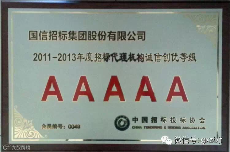 为建立健全招标投标行业诚信自律机制,促进招投标企业自觉履行守法、诚信的社会责任,中国招标投标协会于2014年4月在会员单位中组织开展了2011-2013年度招标代理机构诚信创优活动。协会坚持条件公开、标准明确、把关严格的原则,经过人证审核并公示,最终确定国信招标集团股份有限公司等201个单位获得诚信创优5A等级。
