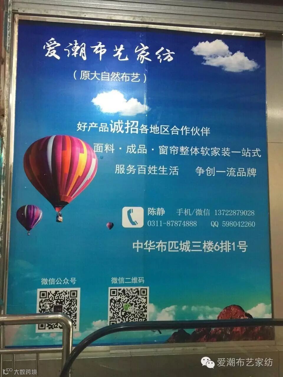 是石家庄最早经营床上用品面料,经过十余年的励精图治,现在在各县市招代理,打造爱潮团队,打破以往的传统模式。为了提高百姓家居生活产品多样化,印染活性环保花型上千余款,窗帘、床上用品一应俱全。