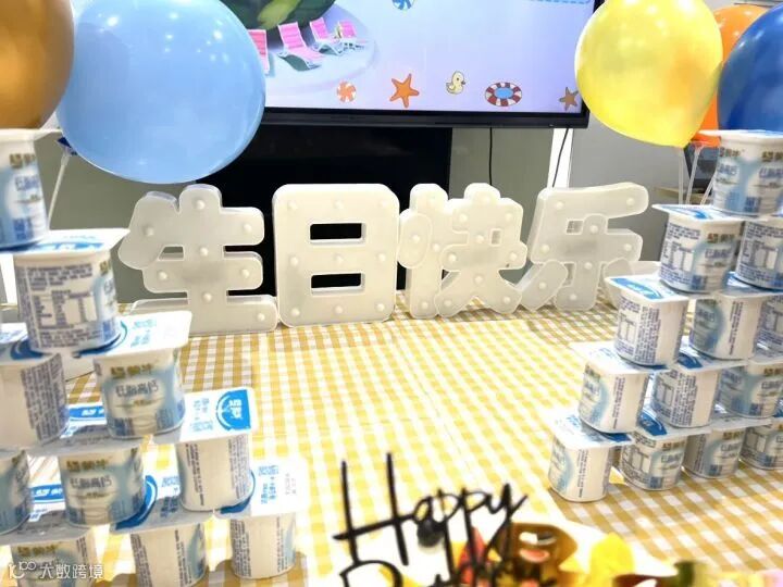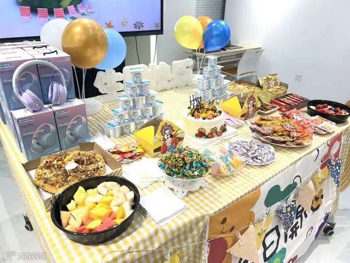 拍照墙、满屏的生日祝福、蛋糕和美食