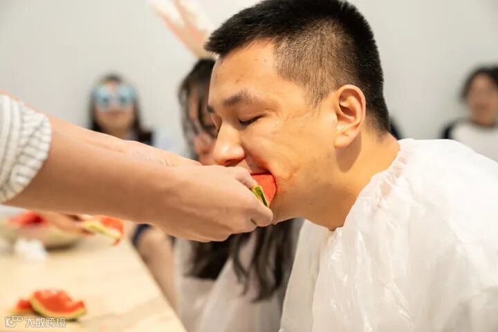两人为一组,一人负责蒙眼和递瓜,一人负责疯狂的咔咔吃,用时最快的小组获胜哦!让我们期待一下哪位小伙伴是最能吃瓜的人呢?猛炫就是了哈哈哈!