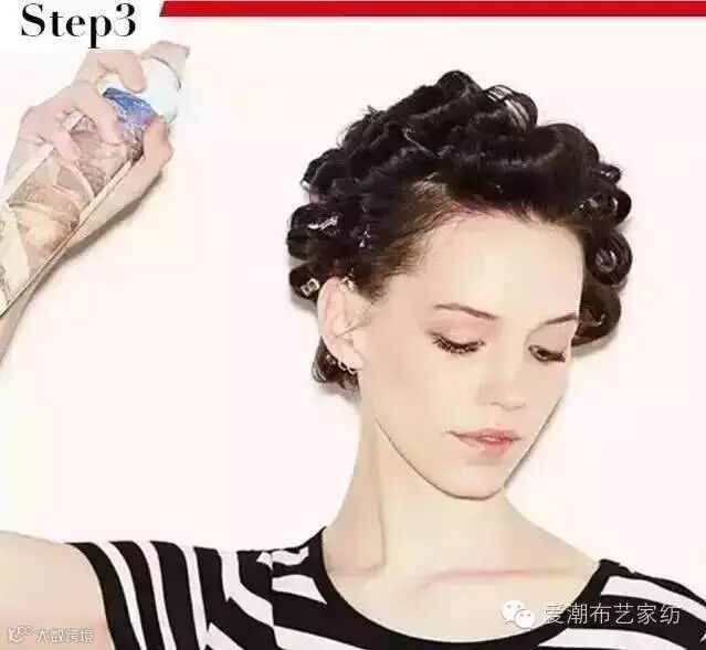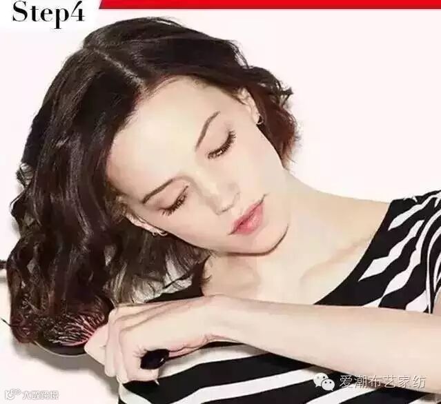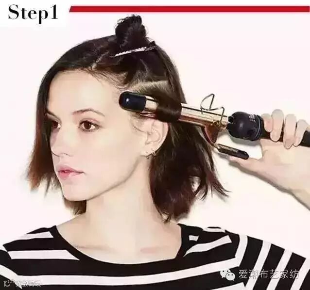 Step1:将头发分区,用卷发棒把其中一区的头发烫卷,并用夹子或发绳将之固定。要选用直径较大的卷发棒噢,否则你就会烫出一个方便面头~