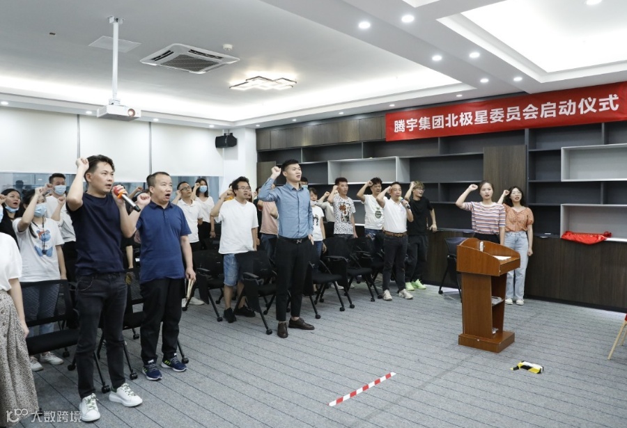 宣誓完毕后,由两位总经理共同揭开腾宇集团北极星委员会牌匾,宣告成立!