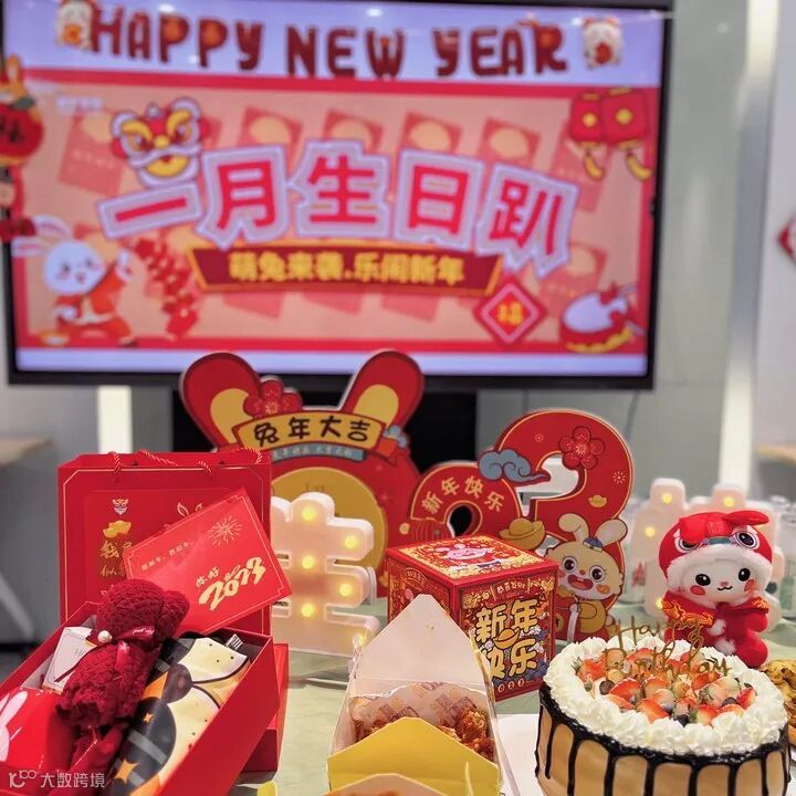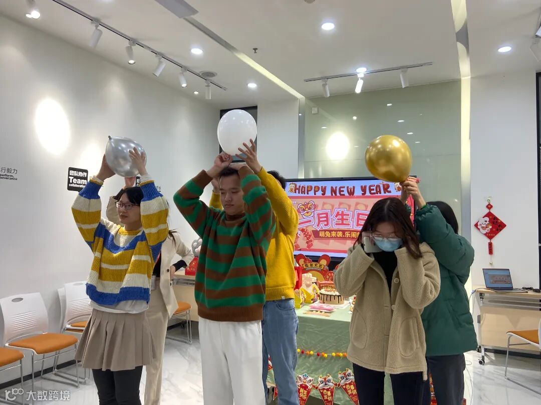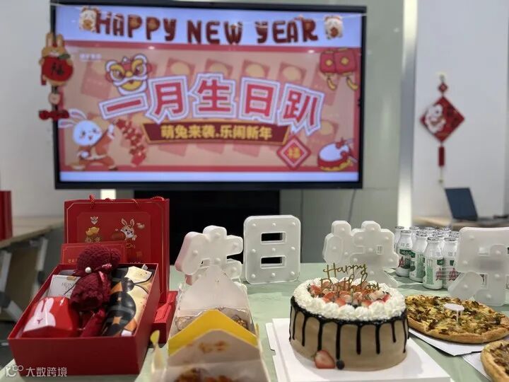 一月生日会正值新春,为营造新春生日氛围,行政小姐姐们更是一早就将现场布置的喜气洋洋。红火精致的电子背景板做衬托,兔年春节挂饰、精致的生日礼物,罗列整齐的美味下午茶,点点滴滴的细节里,蕴含着我们的用心以及对大家的关爱!