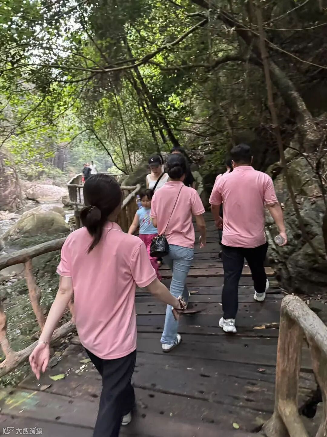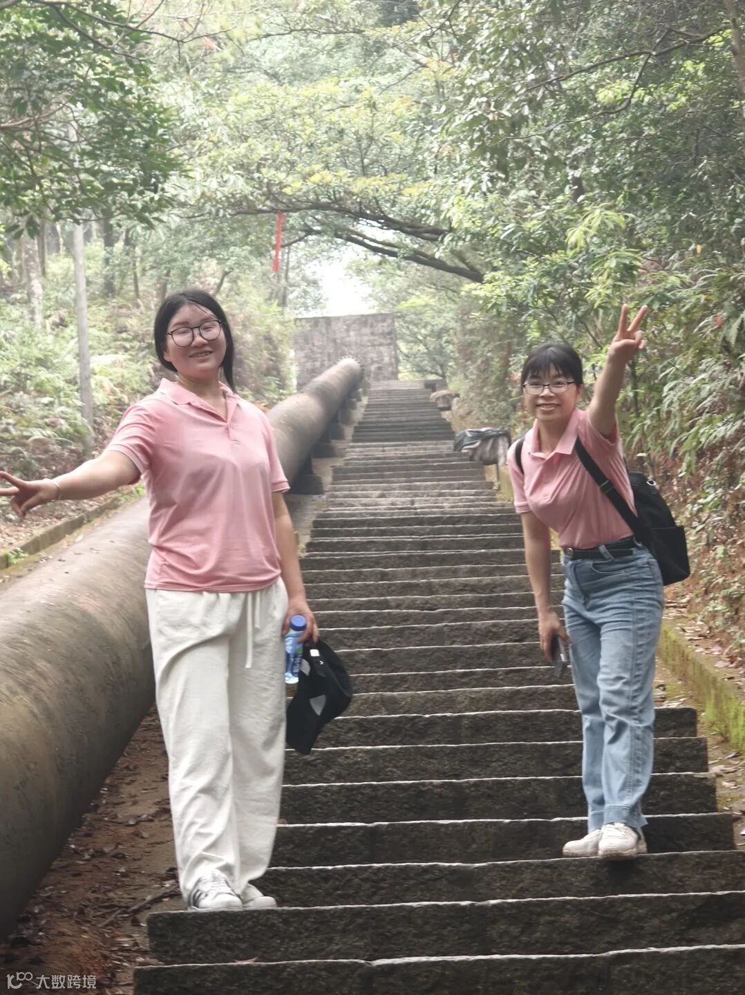 行至1499级瀑鸣台,听溪水潺潺、观瀑布轰鸣,感受水雾拂面的清凉;驻足2199级亲瀑台,近距离触摸瀑布的磅礴气势,定格山水间的美好瞬间。徒步途中,没有职场的层级之分,只有并肩前行的伙伴,体力好的同事主动帮扶身边伙伴,大家分享零食、打卡拍照、欢声笑语,在自然美景中拉近了彼此的距离,也在不知不觉中锤炼了毅力。