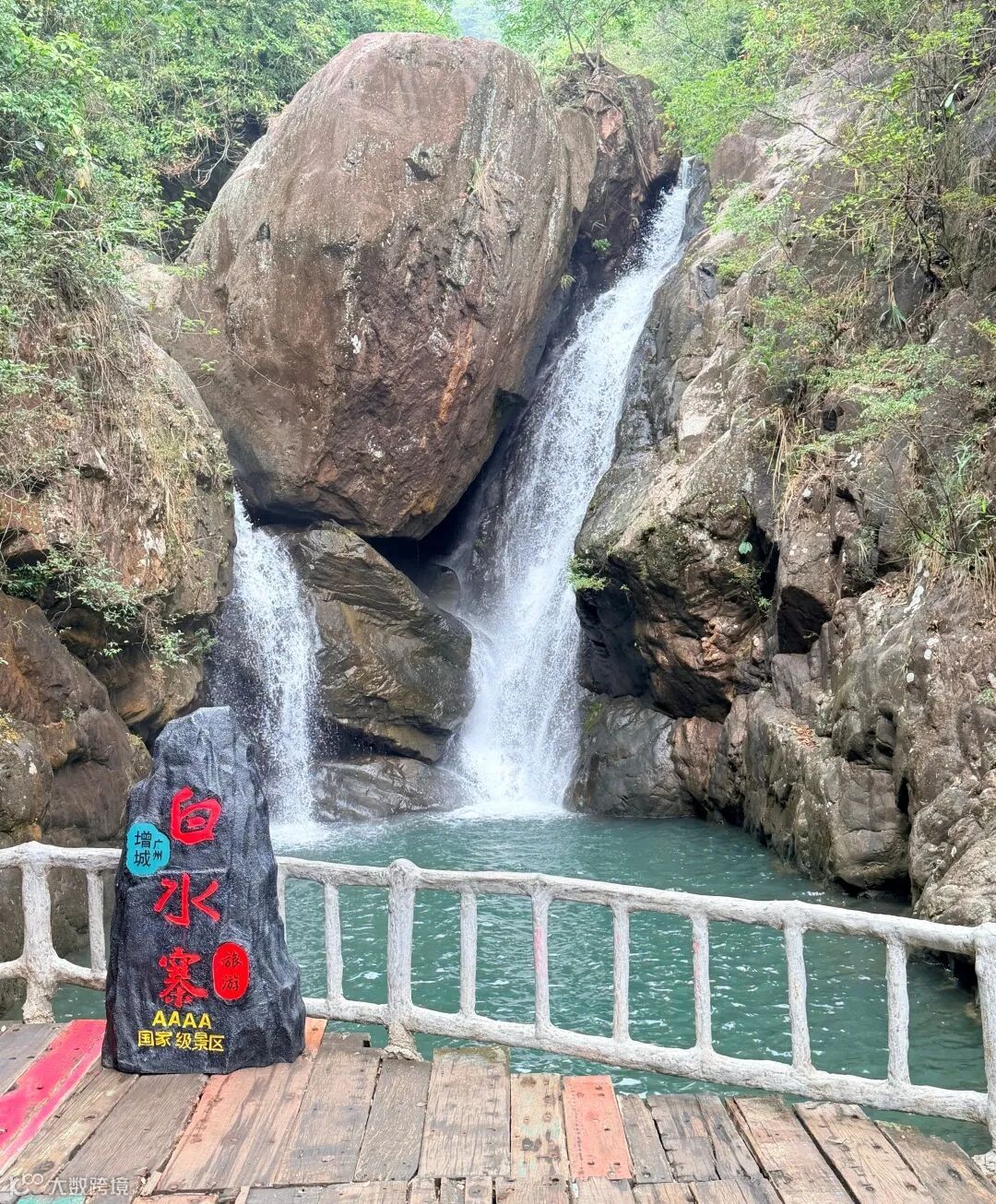 稍作休整、补充能量后,我们全员前往国家4A级景区白水寨,开启沉浸式徒步之旅。这里被誉为“北回归线上的瑰丽翡翠”,森林覆盖率超99%,负氧离子含量极高,踏入景区的那一刻,清新的草木气息扑面而来,瞬间驱散了旅途的疲惫,让人身心舒畅。