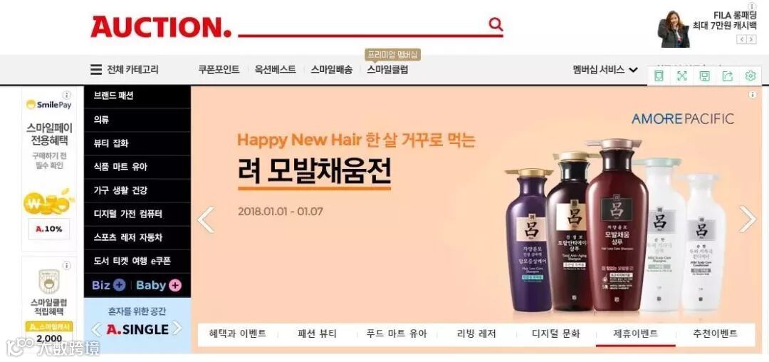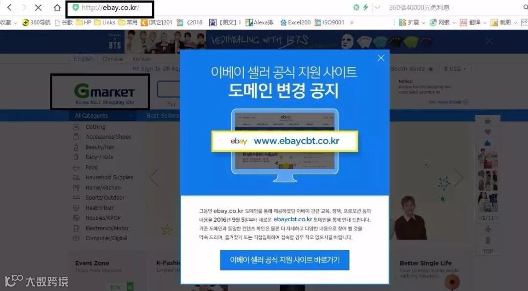 2018eBay韩国站点开通,主要分为四大网站: