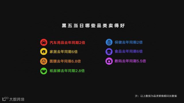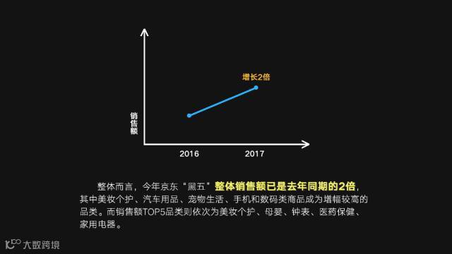 整体而言,今年京东”黑五”整体销售额已是去年同期的2倍,其中美妆个护、汽车用品、宠物生活、手机和数码类商品成为增幅较高的品类。而销售额TOP5品类则依次为美妆个护、母婴、钟表、医药保健、家用电器。从消费时段看,今年京东“黑五”消费者的购物高峰为10点、22点、14点,同时0点的消费比例高于平时。