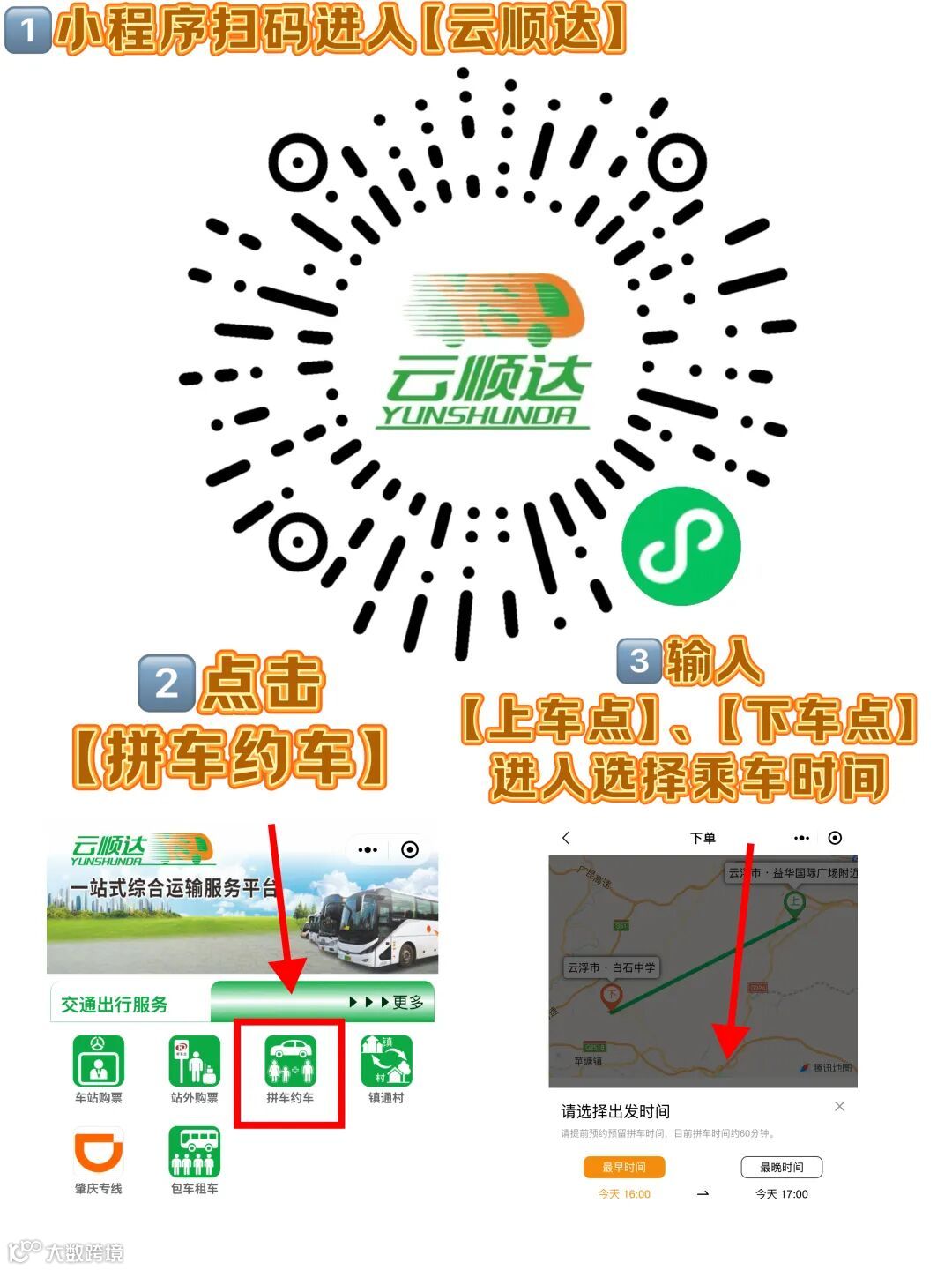 城乡出行具有点多面广、客流分散、时空不均衡等特点。为进一步满足广大乘客高品质、多样化、个性化的出行需求,2023年1月起,云浮汽运&云顺达在原有城乡客运专线的基础上,创新服务模式,拓展服务形式,推出车站顺风车,目前开通的线路有:云浮往返白石、高村、罗定、新兴、郁南、云浮东高铁站,真正实现“随客而行”,乘客可以通过电话(8466888)约车,或微信小程序一键叫车,车辆上门接,送到目的地!