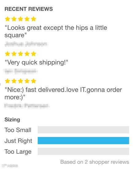 一张Wish上出售的一款充气娃娃下面的评论。截图中模糊处理的是购买者的真实姓名。