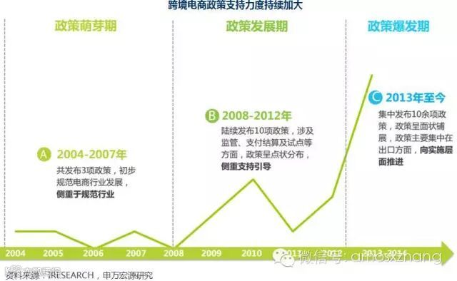 2004年以来跨境电商发展政策经历三个阶段,支持力度不断加大