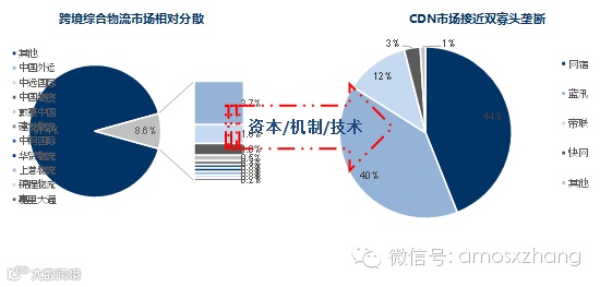 ★跨境综合物流市场CR10为8.6%,相对分散VS.CDN市场接近双寡头